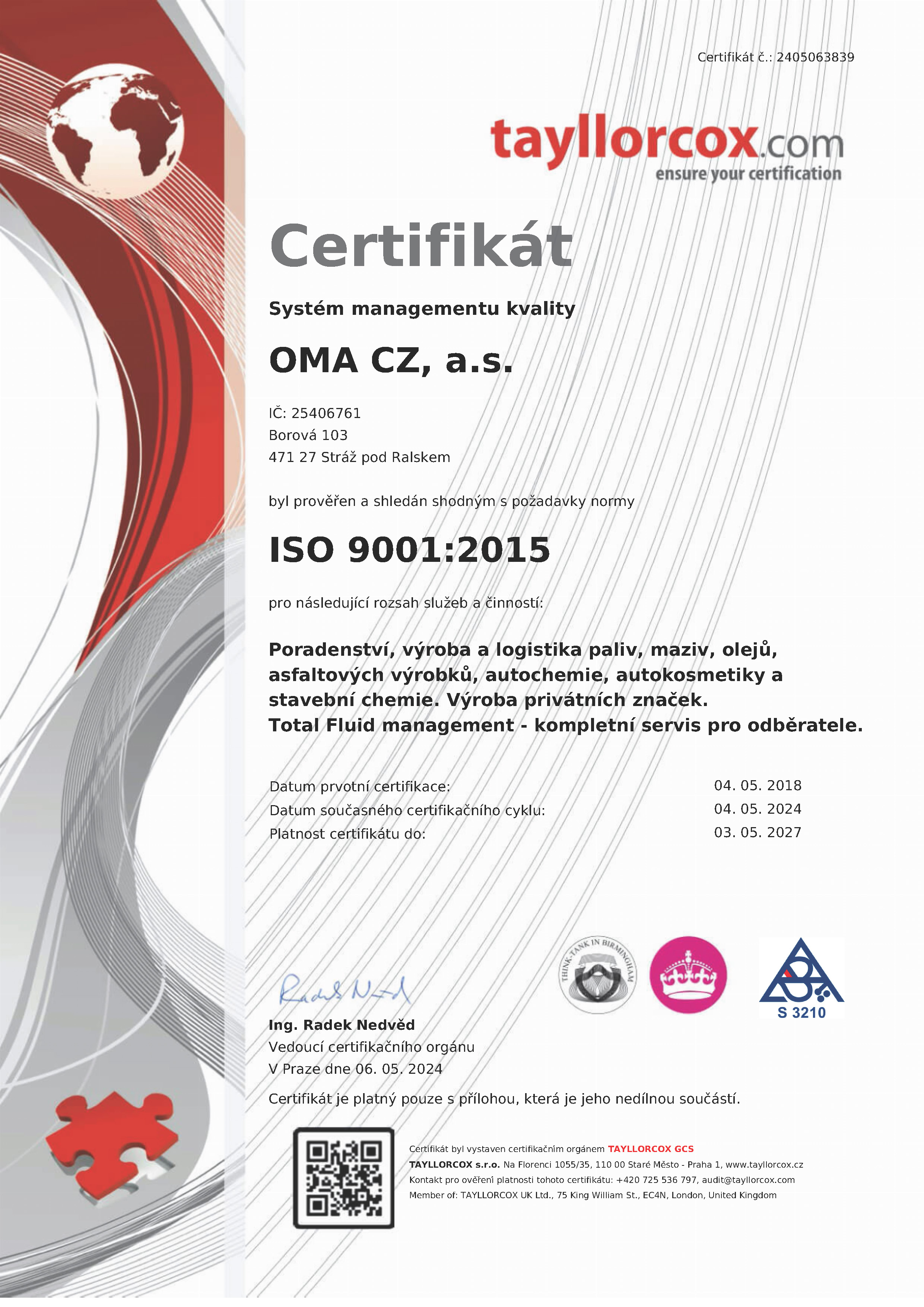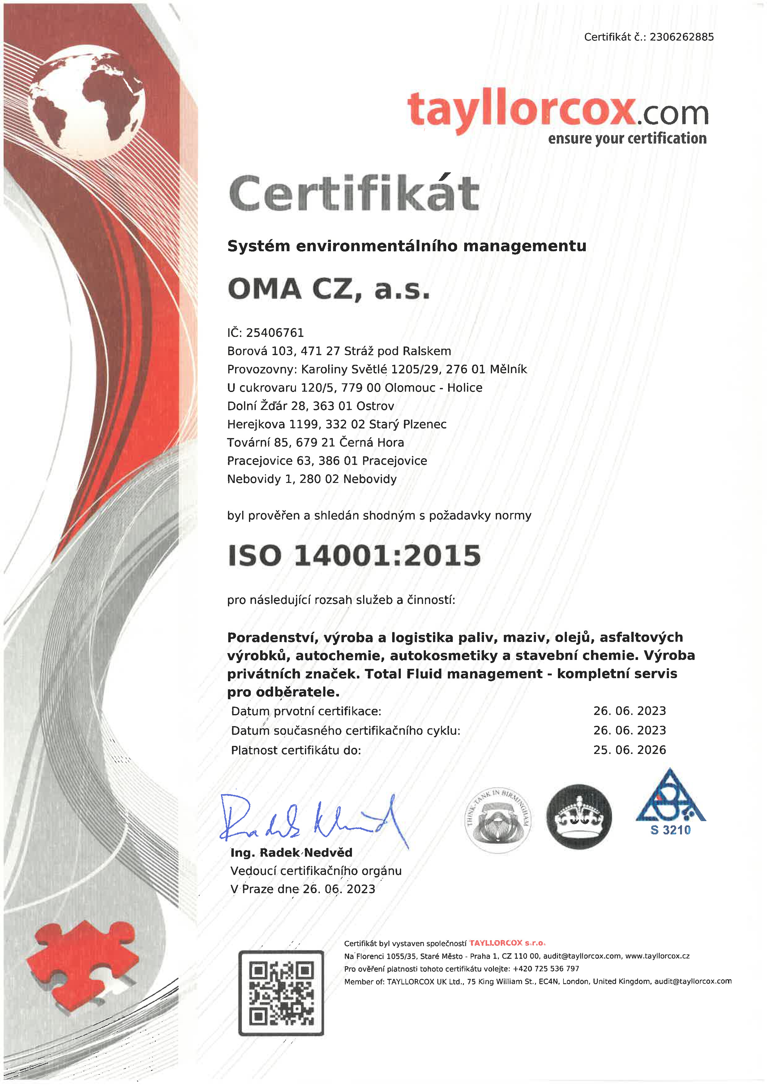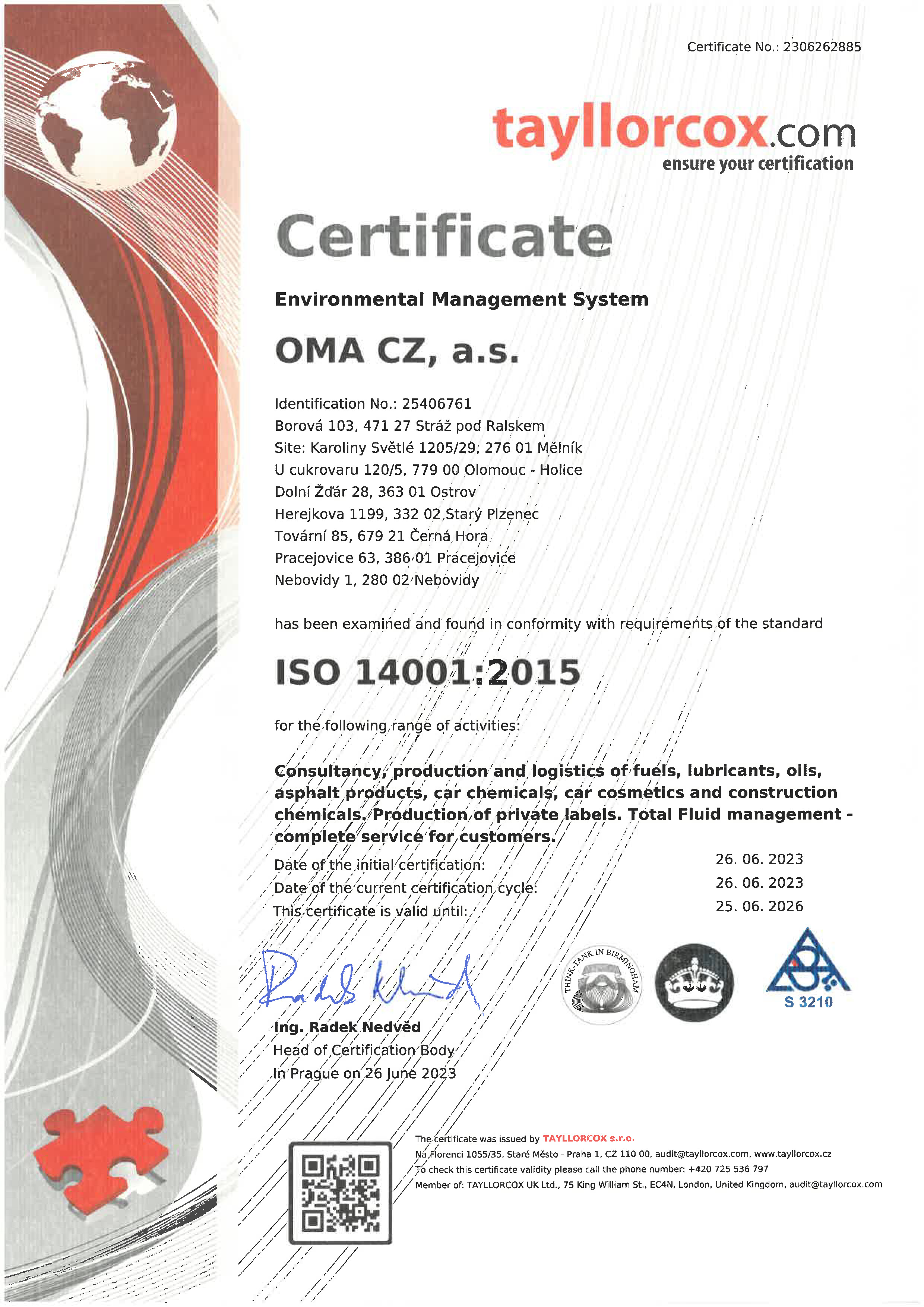 Společnost OMA CZ, a.s. je tradiční, ryze českou, výrobní a distribuční společností v oboru mazacích olejů, plastických maziv, autochemie, autokosmetiky a asfaltových výrobků v Česku. Kromě již zmiňovaných komodit se společnost zabývá prodejem automobilových paliv, topných olejů a asfaltových výrobků. OMA CZ, a.s. je přímým výrobcem vlastních produktů autochemie, autokosmetiky, olejů a plastických maziv značek Carline, Lubline, Greaseline, Cleanline a Biooma. OMA CZ, a.s. je největším oficiálním distributorem výrobků Orlen Oil v Česku a distributorem olejů značek Castrol, Total, Shell a Mobil, dále autochemie značek VIF, Coyote a dalších.