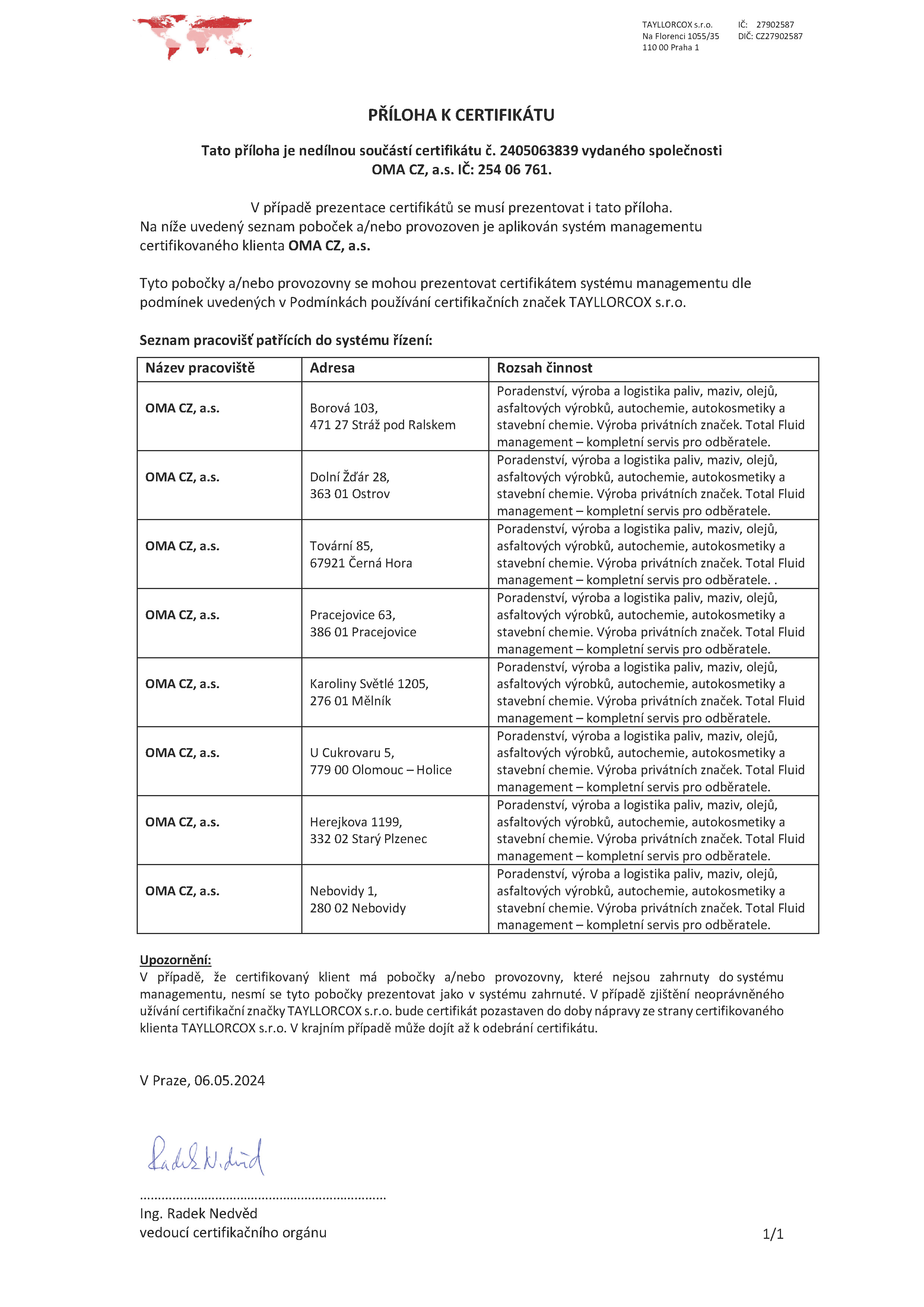 V roce 1995 byla založena společnost OMA plus s.r.o. jako velkoobchodní společnost s oleji, mazivy, autochemií a autodoplňky s působností v oblasti sídla společnosti Stráže pod Ralskem.